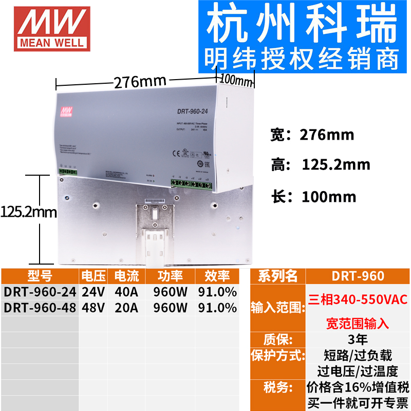 Ming Wei Switch Power Supply DRT DRH-120 240 480 960W 24V48V Two Phase 380V Input