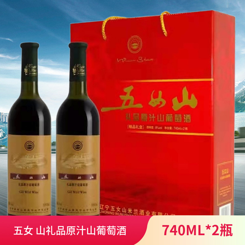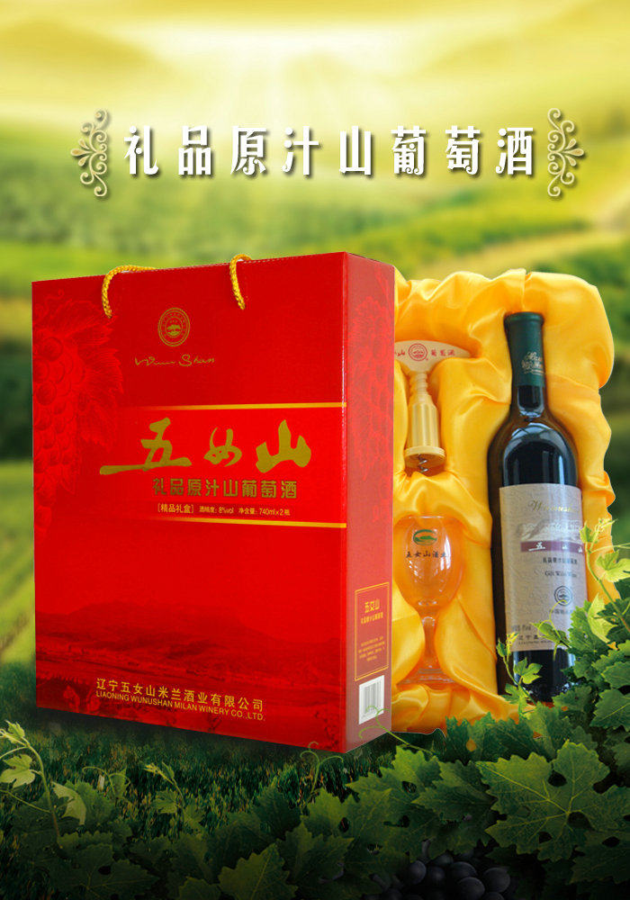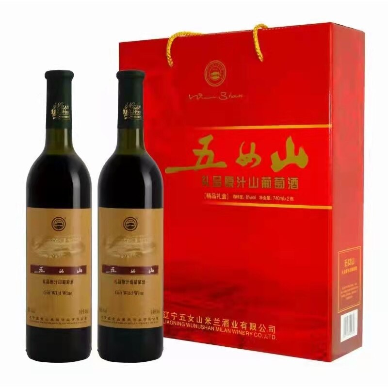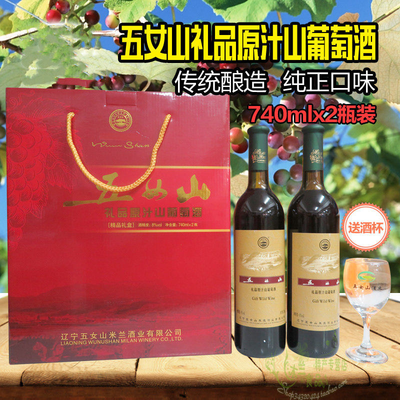 Gift box Five women Mountain gift original juice Mountain wine sweet type 8 degrees 740ml * 2 bottles with wine glass intimation
