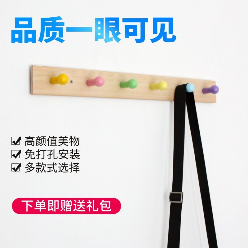 Original Handmade Solid Wood Fields Garden Fitting Rooms Colorful Wooden Balls Creative Decoration Free Of Nail Punching Hooks Wall Hanging Hook