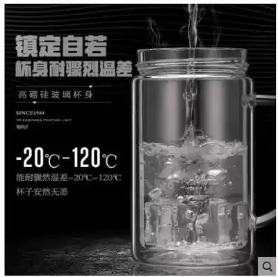 Fugang oversized double-layer glass cup with tea cup large capacity household water cup with lid transparent filter bubble portable cup