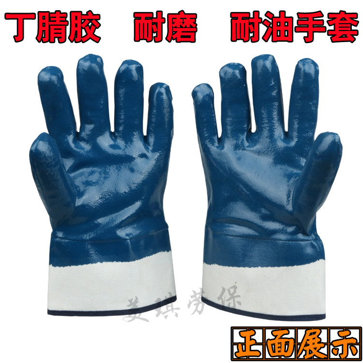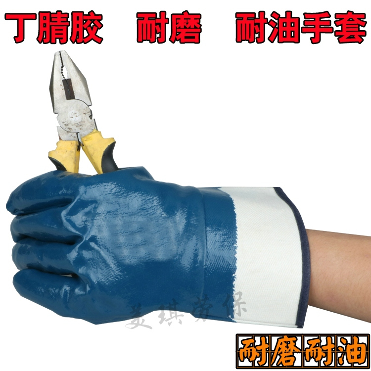 Oil-resistant oil-resistant gloves Large butyl anti-slide canvas full-immersion adhesive welding industry work wear resistance