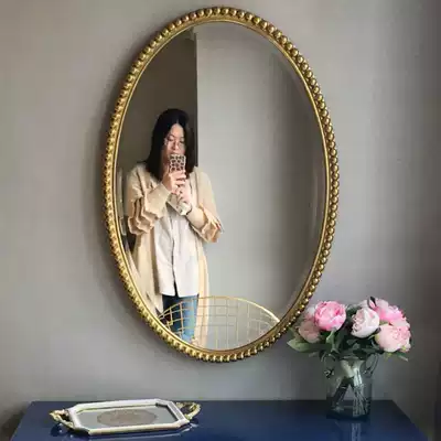 European-style antique vanity mirror Bedroom wall-mounted oval vanity mirror Household sink wall-mounted bathroom mirror