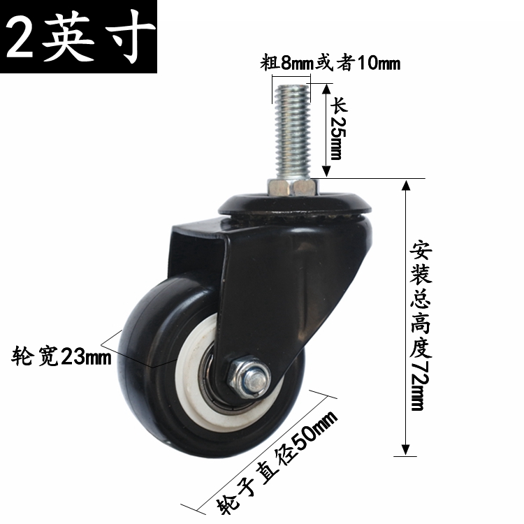 1 5 inch 2 inch urethane polyscrew rod with brake universal wheel furniture caster double bearing wear-resistant sofa mute pulley
