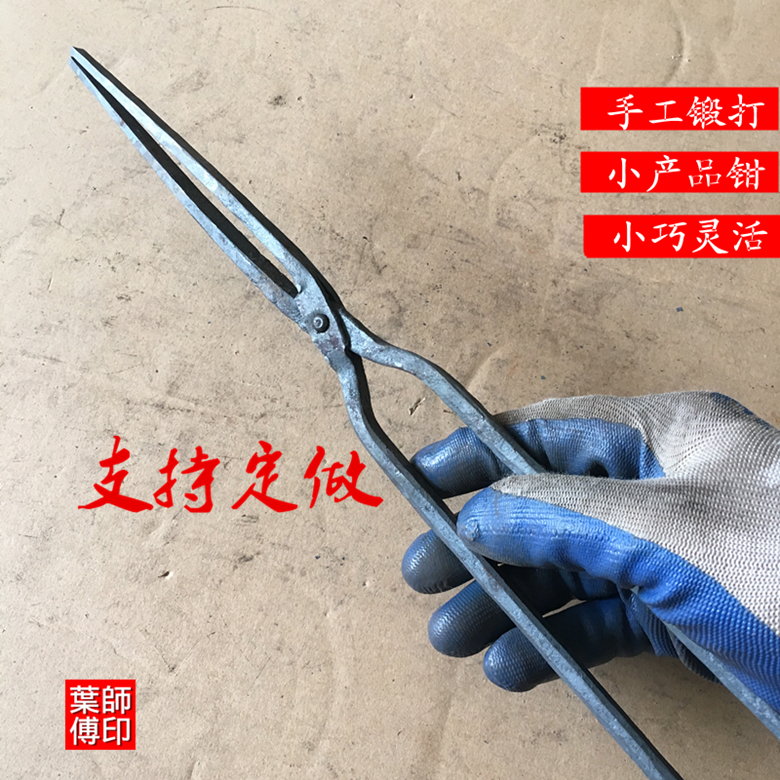 Aluminum ingot clamps hand-forged sharp-nosed flat-mouth fire pliers iron pliers heat treatment iron clamps small product pliers
