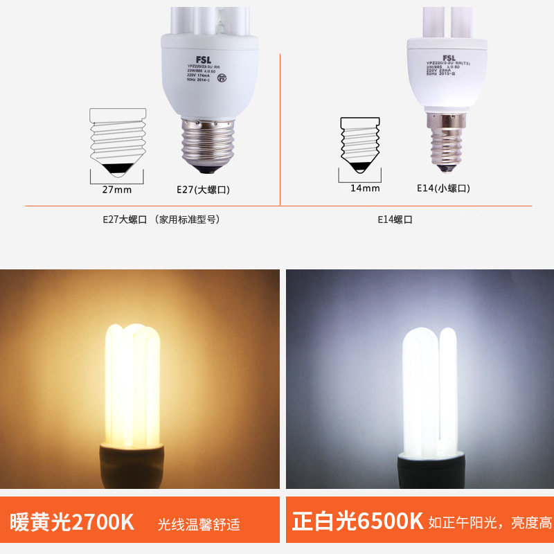 fsl Foshan Lighting 2u energy saving lamp e27 screw screw electronic energy saving bulb household 5W8W13W18W23W