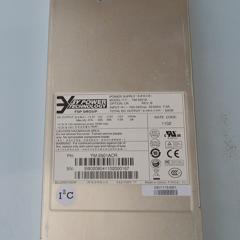 New original dress warranty for one year 3Y YM-5501A 500W 2U server redundant power supply 80PLUS