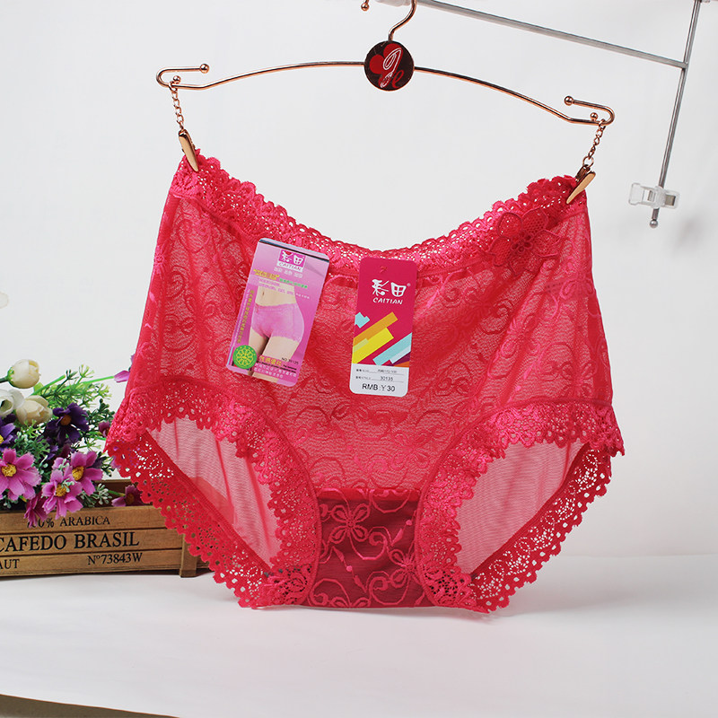 Color Fields Underwear 30135 Ladies High waist lace mesh fabric transparent hollowed out sexy mid waist 30136 Four corner pants