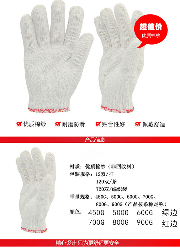 Site protection cotton gloves labor protection cotton wear-resistant anti-skid 600g700g800g900g 1000g thick mail