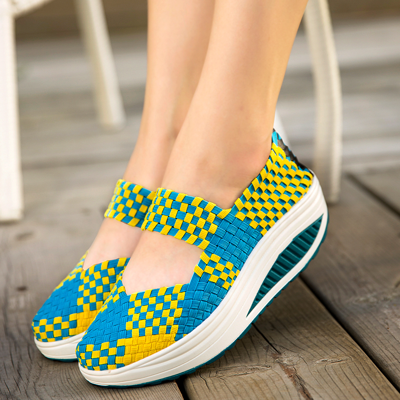 Summer women's shoes, middle-aged and elderly mother's shoes, comfortable soft-soled middle-heel shoes, elastic woven rocking shoes, women's height-increasing travel shoes