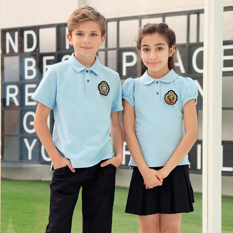 Children's short-sleeved T-shirt Primary school uniform top Summer kindergarten garden dress Summer men's and women's short-sleeved polo shirt