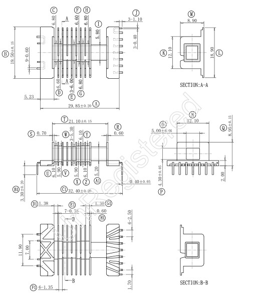 EEL19 magnetic core multi-slot skeleton 4 6 L foot with Shell ten sets one pack