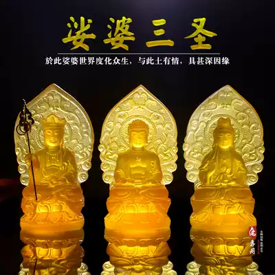 The three Holy glazed Buddha statue ornaments of the Gizang Guanyin Bodhisattva Sakyamuni Buddha home furnishings