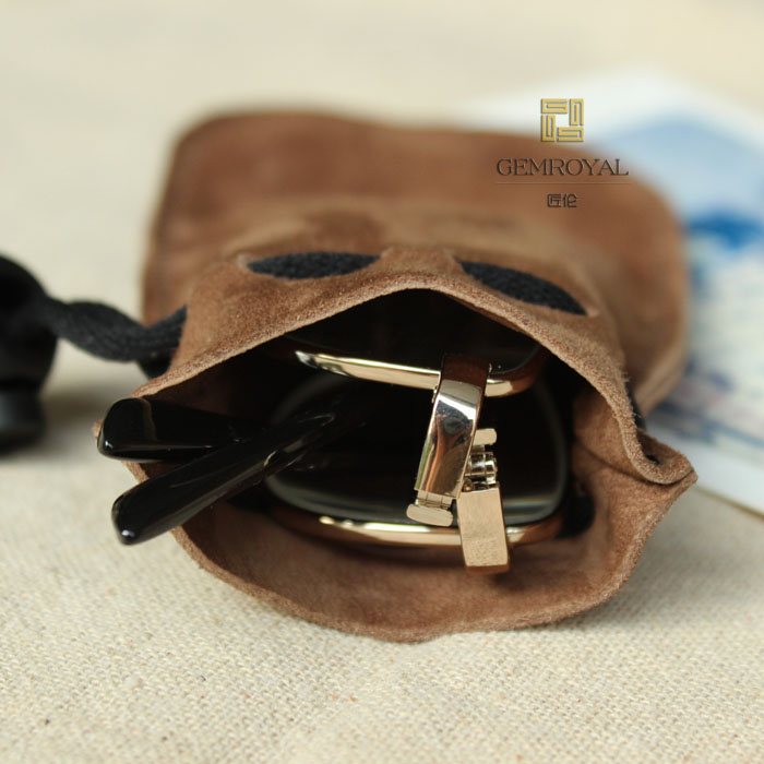 Sheep leather folding glasses containing bag genuine leather old flower glasses leather sleeve protective sleeve tightening mouth small