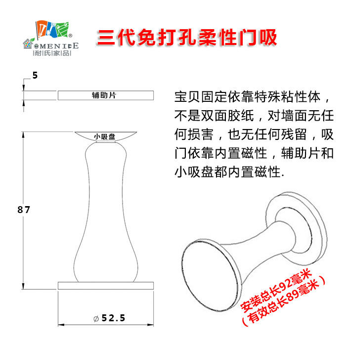 muted plastic door suction-free punch-free strong magnetic room door free from bored silicone door touch toilet door handle crashworthy