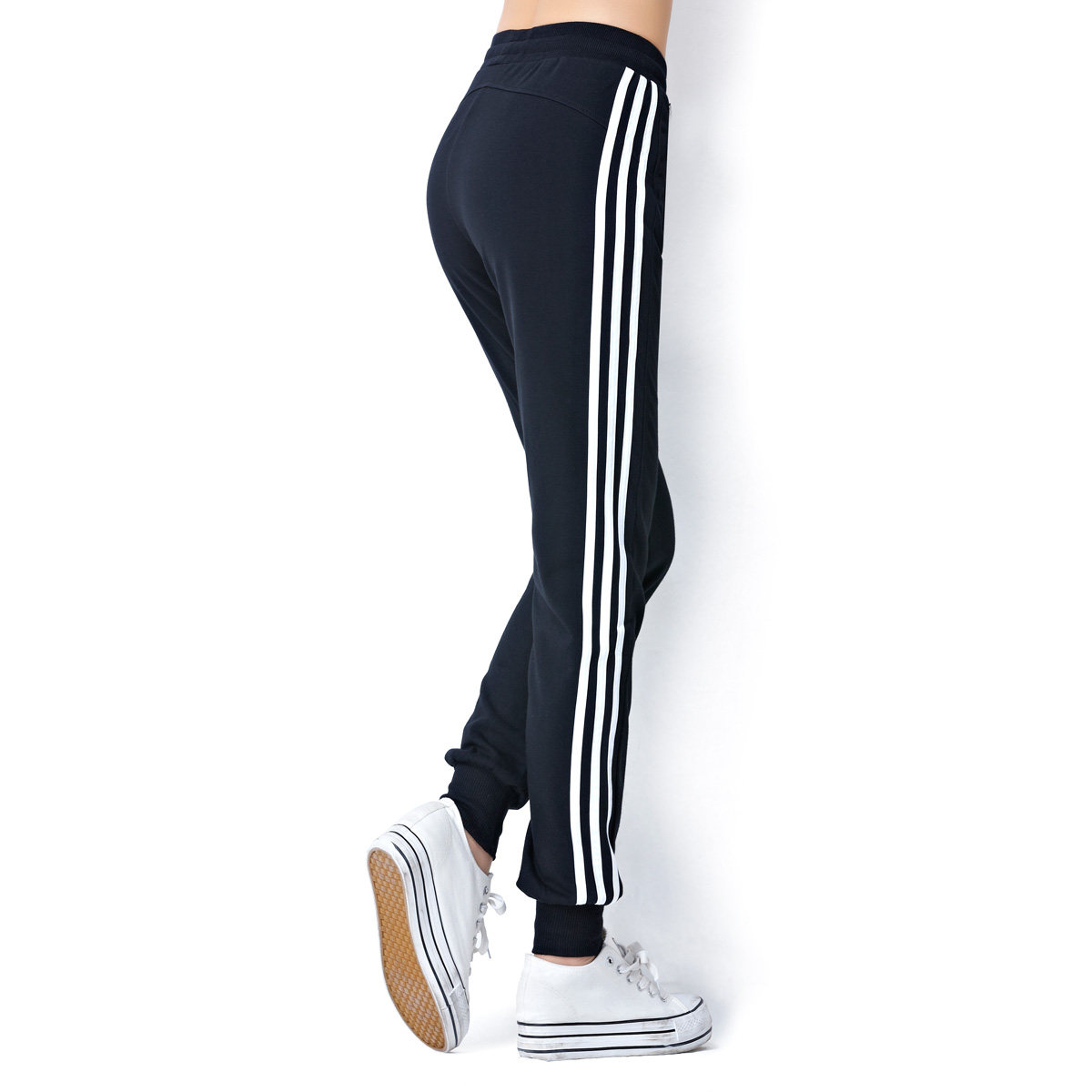 Clothes tuna sports pants women's pants spring and summer thin three bar pipe pants closed running casual thick cotton pants couples