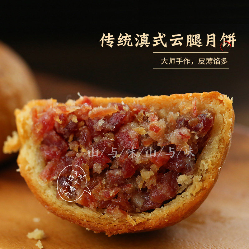 Mountain and taste Xuanwei ham mooncake 500g Yunnan-style multi-taste Xuanwei egg yolk ham mooncake Yunnan specialty gift box