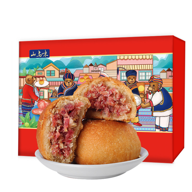 ① (bulk)classic Xuanwei ham 50g×10 pieces ② (gift box)Red bear pick-up gift box Xuanwei ham mooncake as a child Traditional handmade in Yunnan