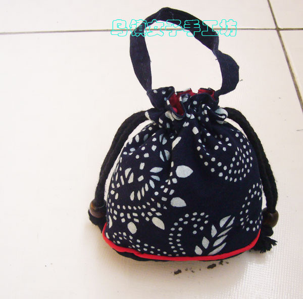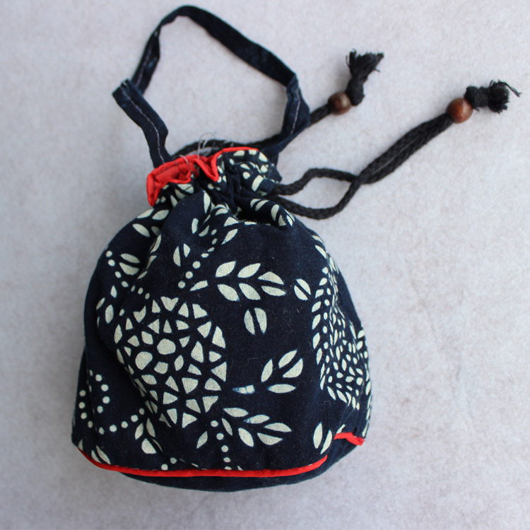 Uzhen Ethnic Wind Craft Gift Pendulum Decoration Blue Printed Cloth Draw With Pure Cotton Small Bag Drawing Rope Small Carry Bag Zero Wallet Key Bag