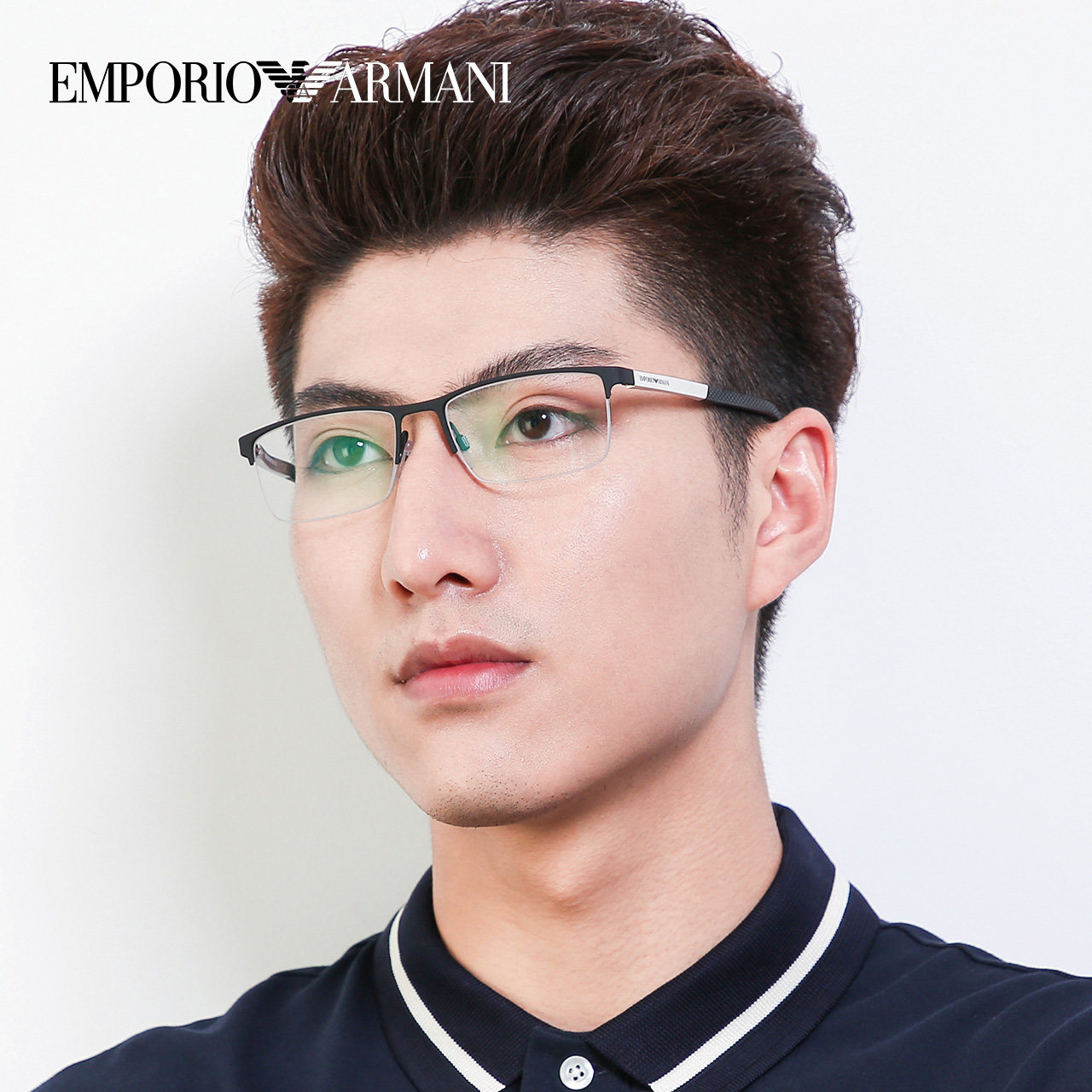 Armani business luxury high-end glasses frame tide myopia glasses men's square half frame aluminum magnesium glasses frame EA1041 - Taobao