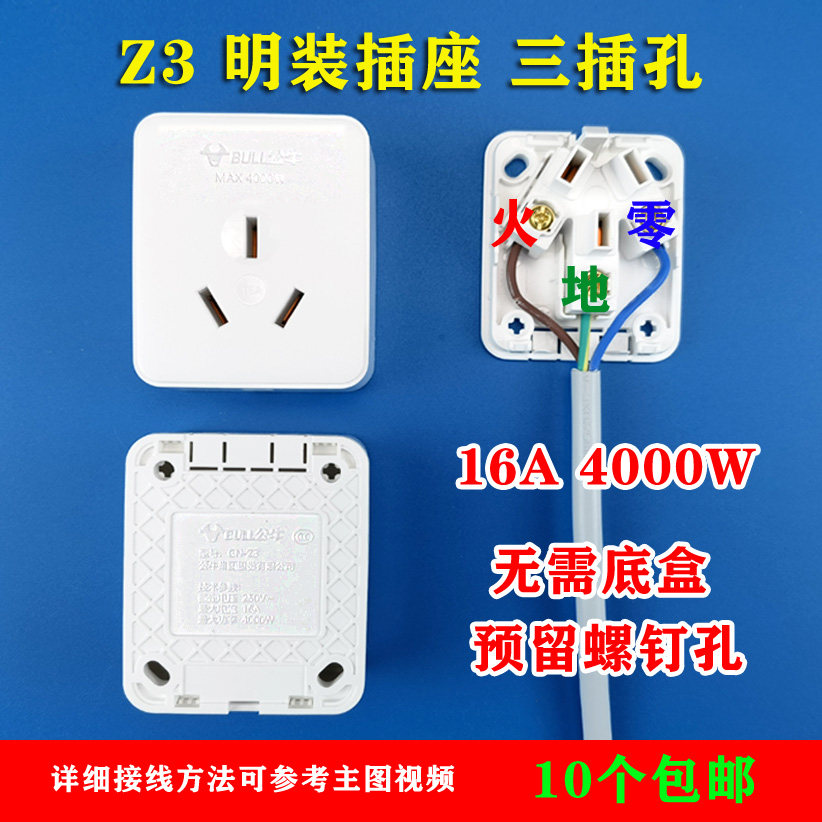 Z1 (10A250V2500W Surface Mounted Socket) Z2 (10A250V2500W Surface Mounted Socket) Z3 (16A250V4000W Surface Mounted Socket)