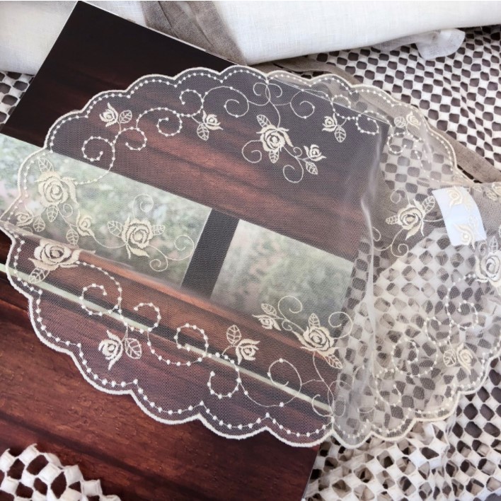 Korean imported lace table pad oval tables flagtablecloth Korean white beige tables photo frame decoration pad