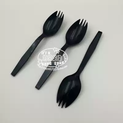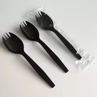 Thickened disposable plastic fork spoon black independent packaging Western food fork spoon one cake fork spoon 100