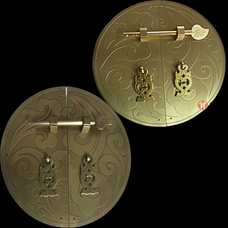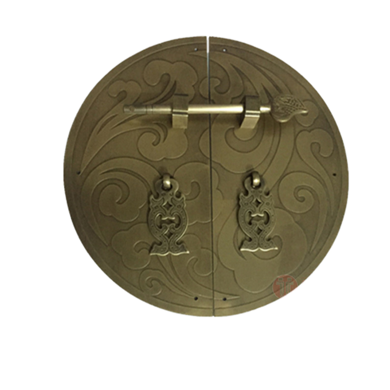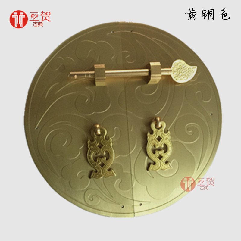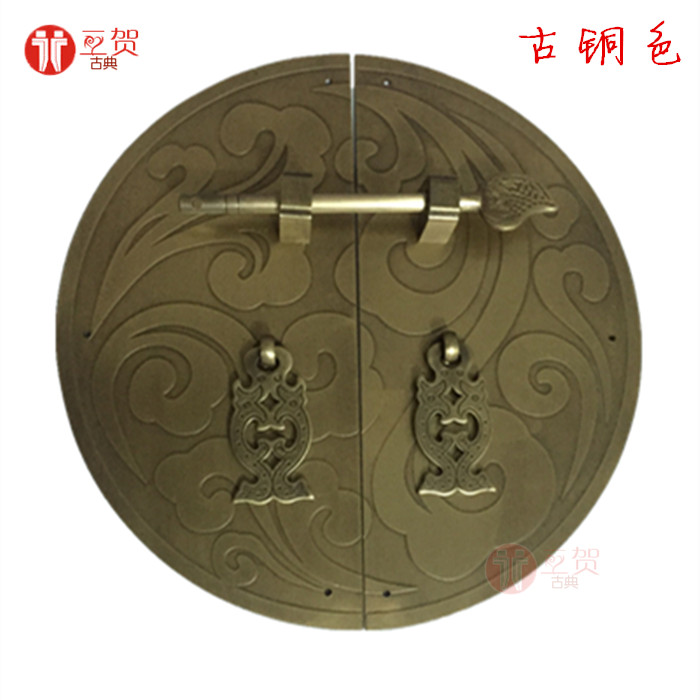 Chinese antique pure copper cabinet door carving hand bookcase overall cabinet shoe cabinet door Xiangyun ancient round hand handle