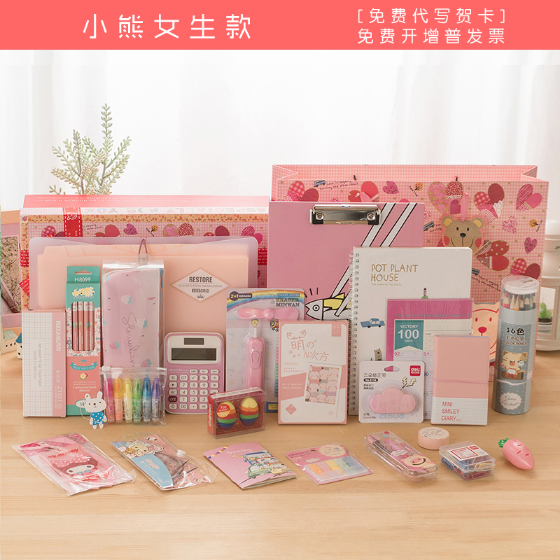 Student Gifts Fine Students Online Red Stationery Gifts School Holidays Gifts Girls Hearts Children Elementary School Children Elementary School High End Students Prize Stationery Suit Gift Box Birthday Big Gift Bag