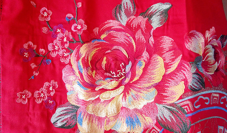 Pure cotton gold number Yishijia bedding four-piece set of red wedding happiness flowers high-grade new embroidery