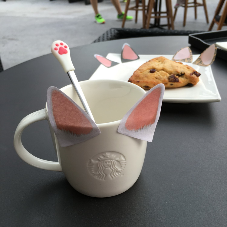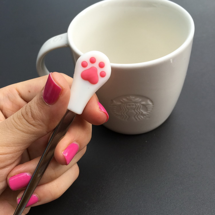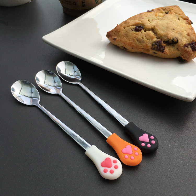 There are cats cute cat claw meat ball stainless steel spoon cat foot three-dimensional meat pad silicone coffee spoon creative long handle small