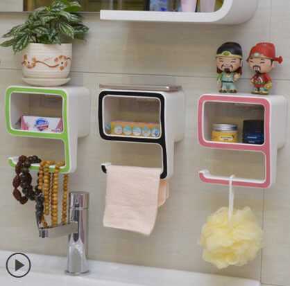 Creative number 9 plastic fat tray Magic incognito stick suction wall type fat tray shelf Powder room bathroom shelf