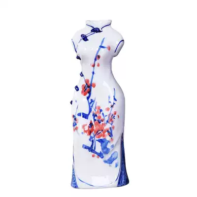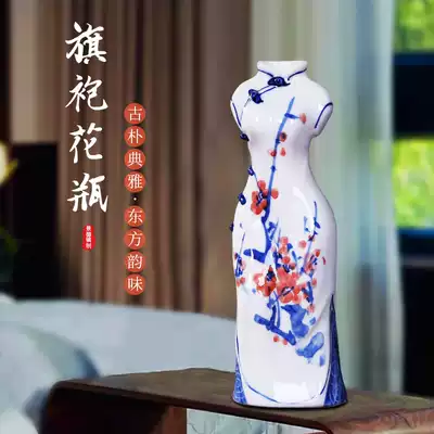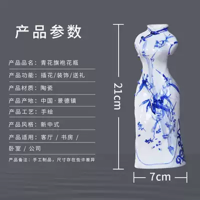 Jingdezhen ceramics hand-painted blue and white porcelain cheongsam small vase simple modern home decoration crafts decoration