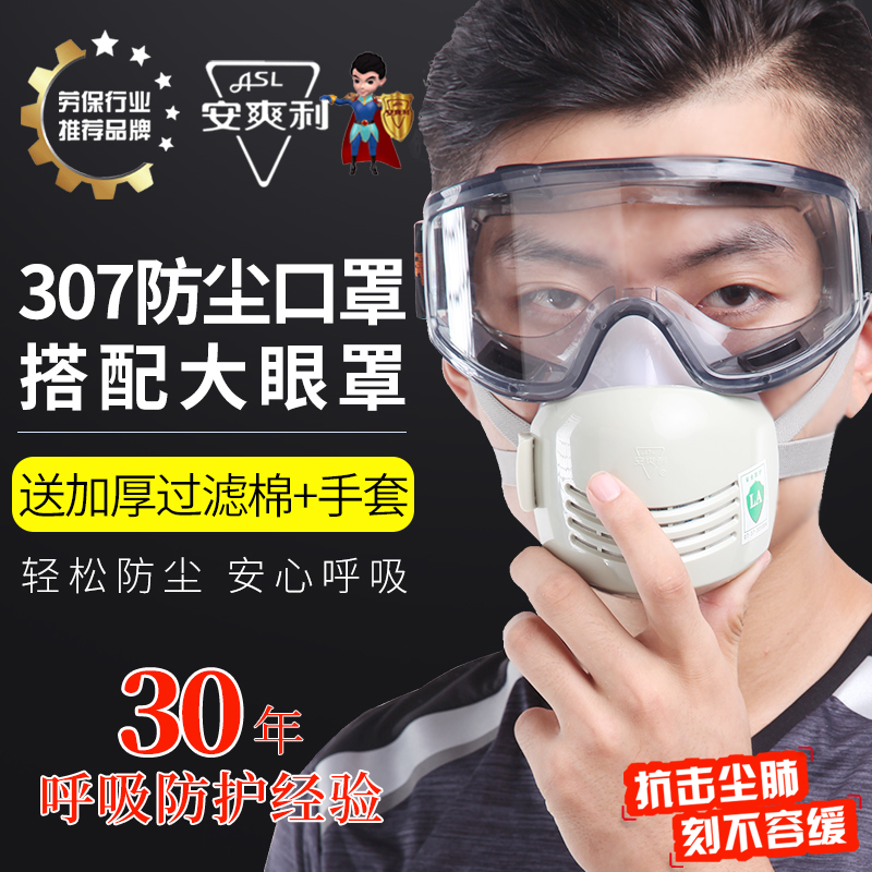 Mask + gray anti-fog large eye mask Send 62 pieces of filter cotton + gloves