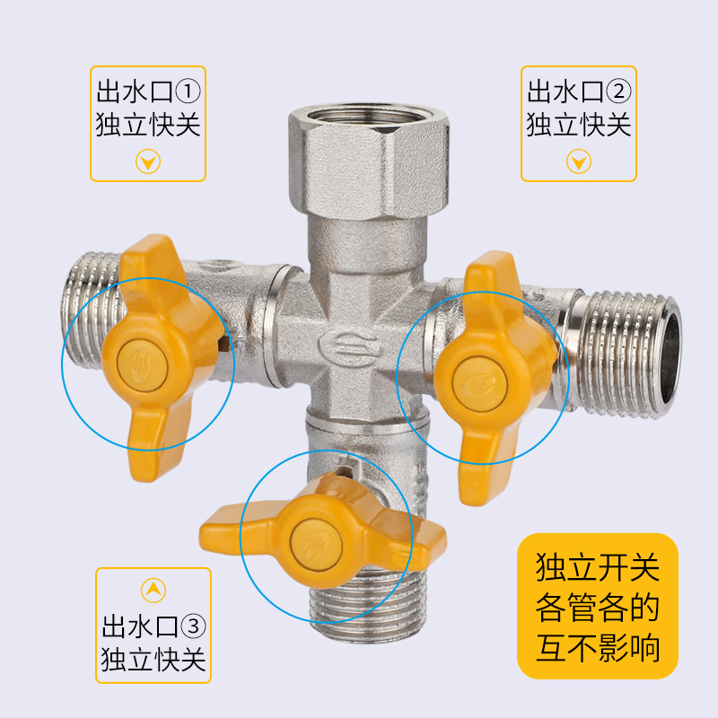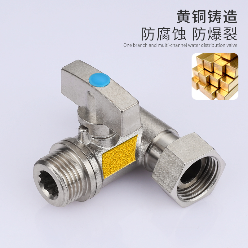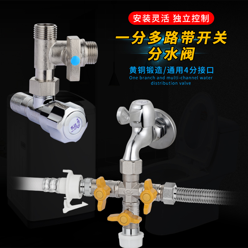 Copper valve switch Three-way water pipe shunt water separator Washing machine connector One point two with valve faucet connector