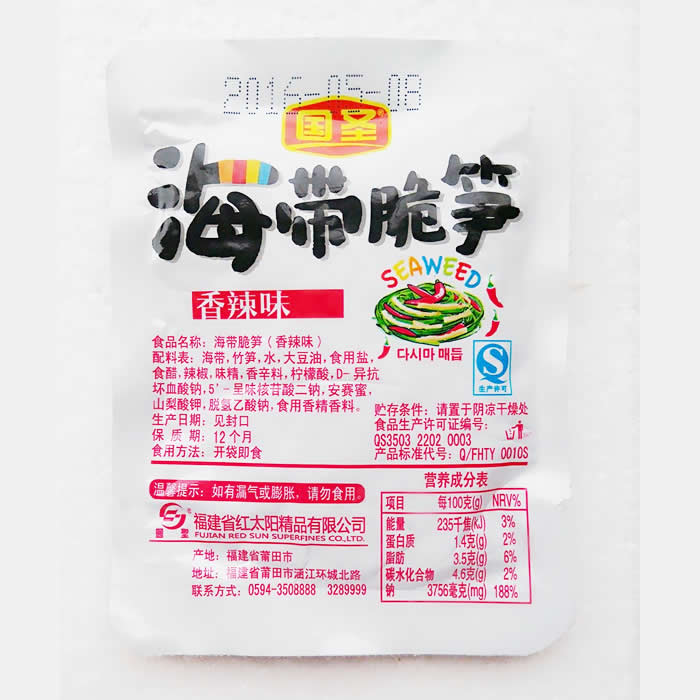 Kelp Bamboo Shoots Water Soybean Oil Edible Salt Chili Pepper, etc.
