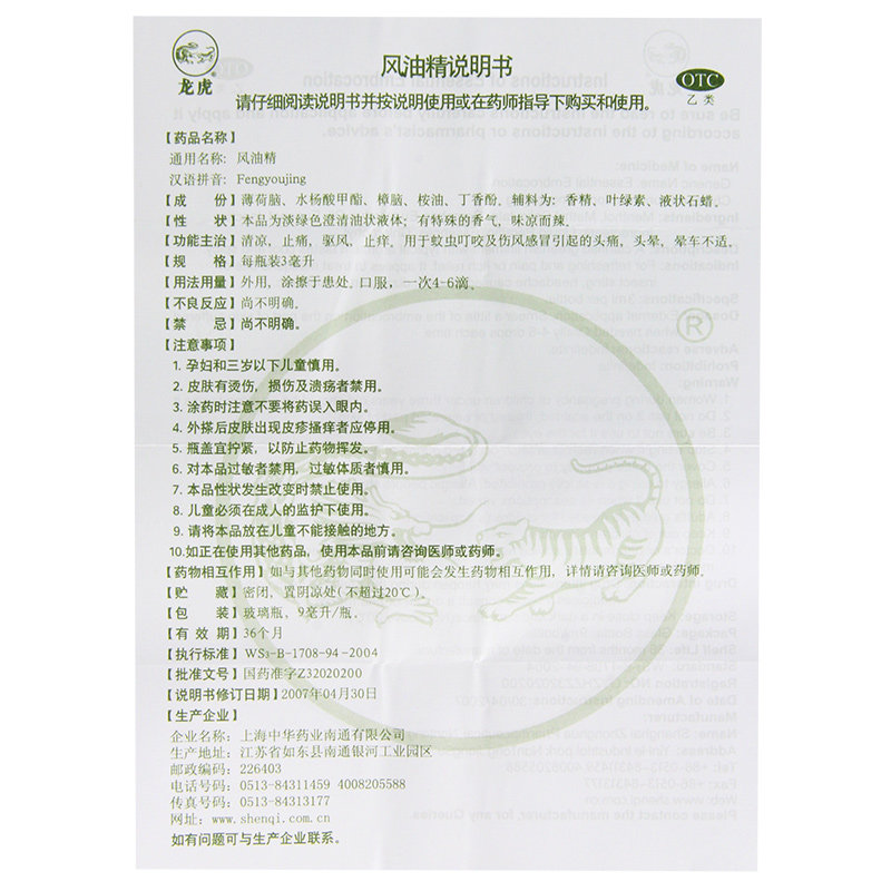 Dragon Tiger Brand Wind Oil 9ml large bottle promotion mosquito repellent, pain relieving itching, anti-mosquito repellent, wind and headache, refreshing students