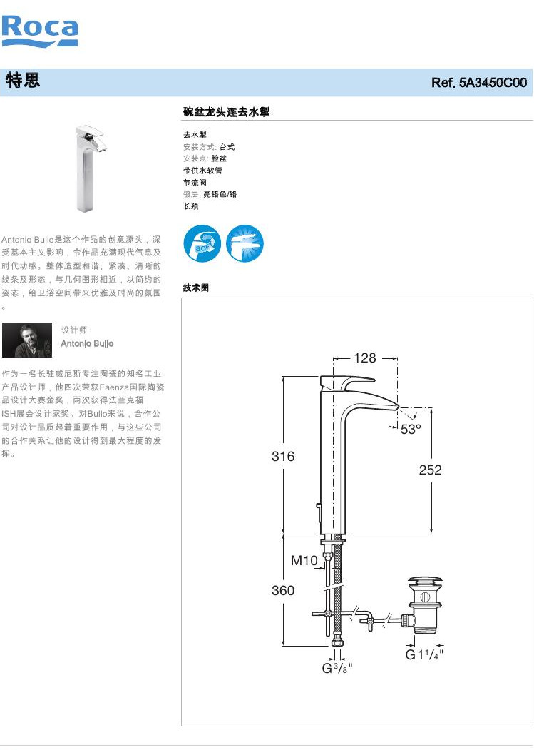 Roca LeHome Bathroom Teth Bowl head (chrome plated) 5A3450C00 with dewater full import