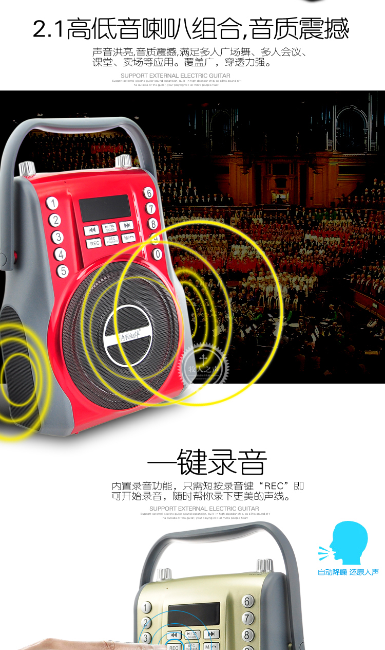 L398 player three speakers large volume praise portable audio dual high capacity battery