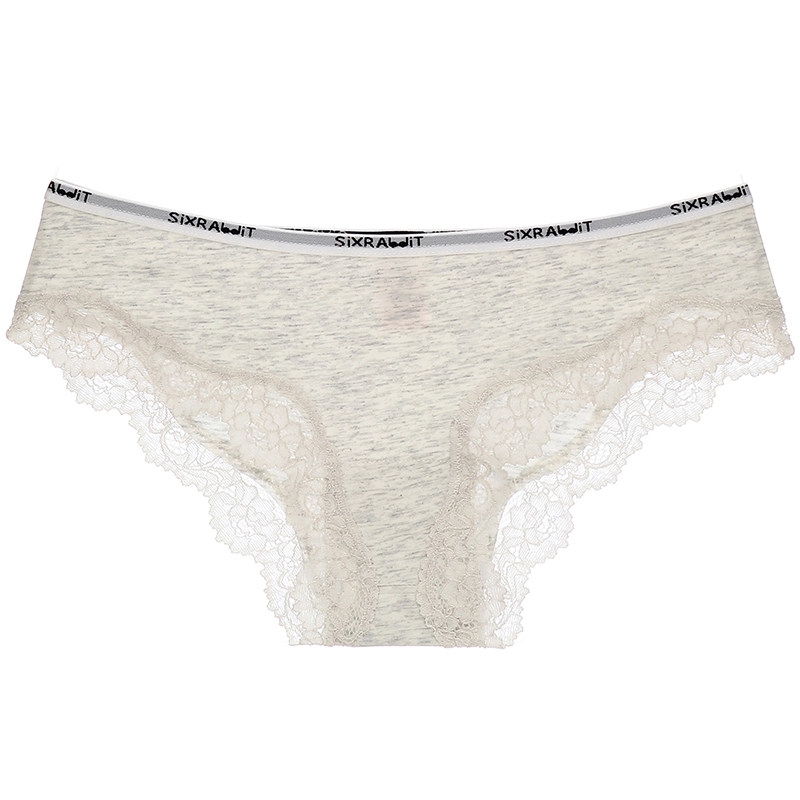 Six Rabbit Ladies Low Waist Pants Pure Cotton Crotch Sweet Girl Raw Lace Sexy Triangle Pants White Safety Pants