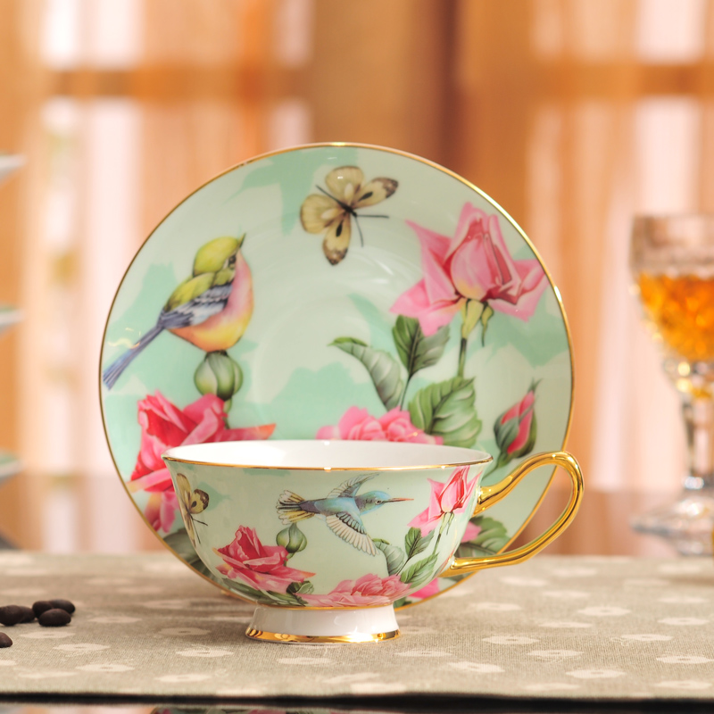 High-grade European bone China coffee cup set Ceramic coffee cup and saucer English afternoon tea Flower tea tea set Glazed color