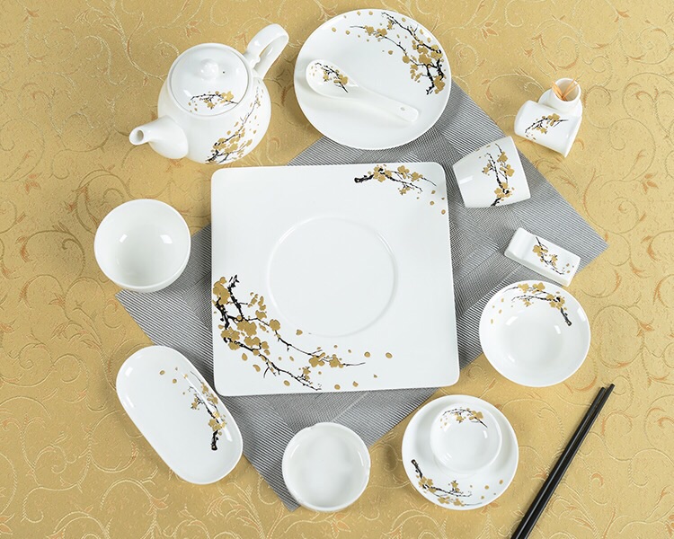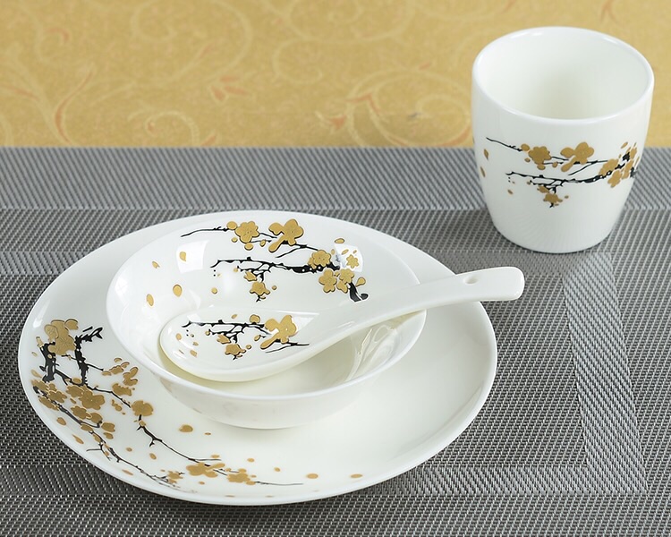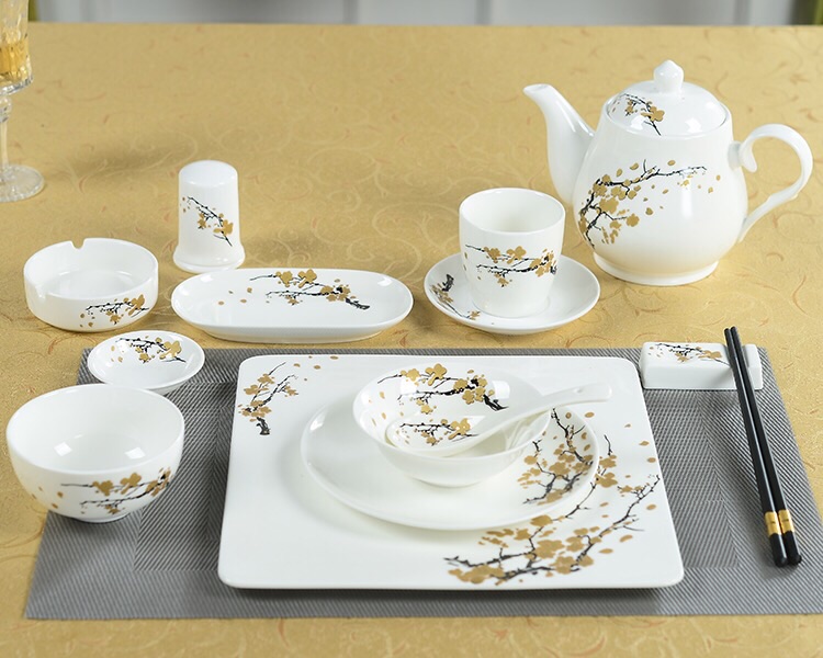Hotel Club Restaurant with ceramic restaurant dinner kit 4 pieces of bone dish dish dish bowl gold plum luxury
