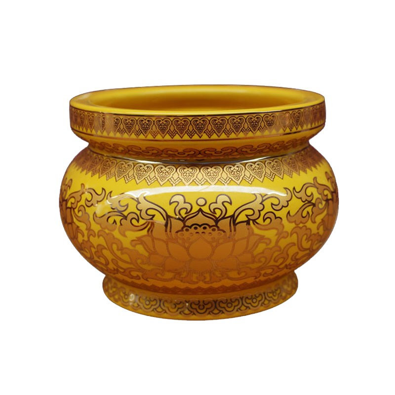 Light yellow bright yellow 8 inches Tang Cai offering fruit plate 8 inches red lucky plate 5 inches Tang Cai lotus incense burner 7 inches