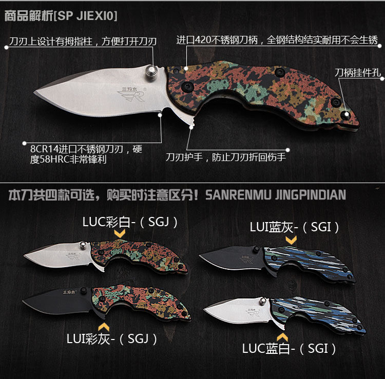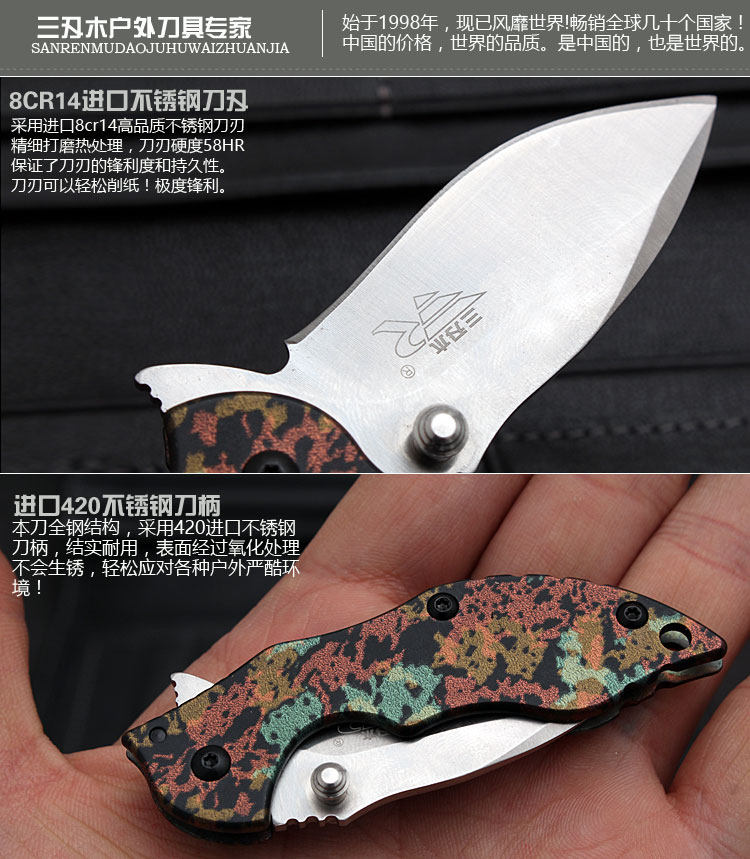 Three-edged wood 6026 Outdoor portable Mini folding knife anti-body folding knife army knife key buckle small knife