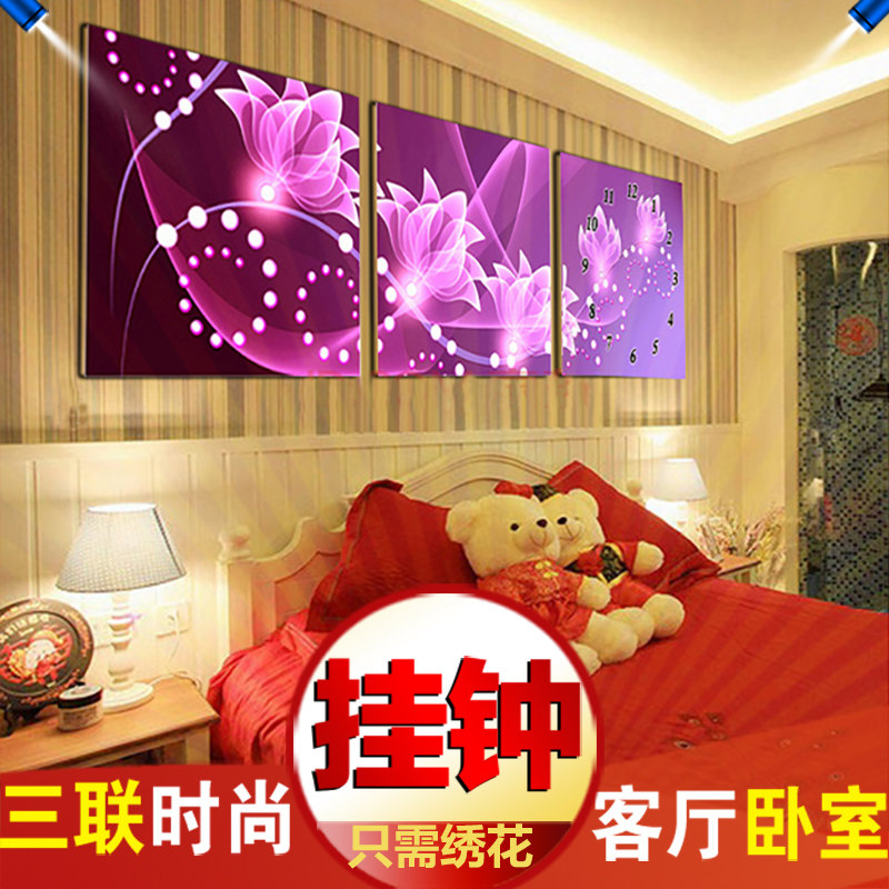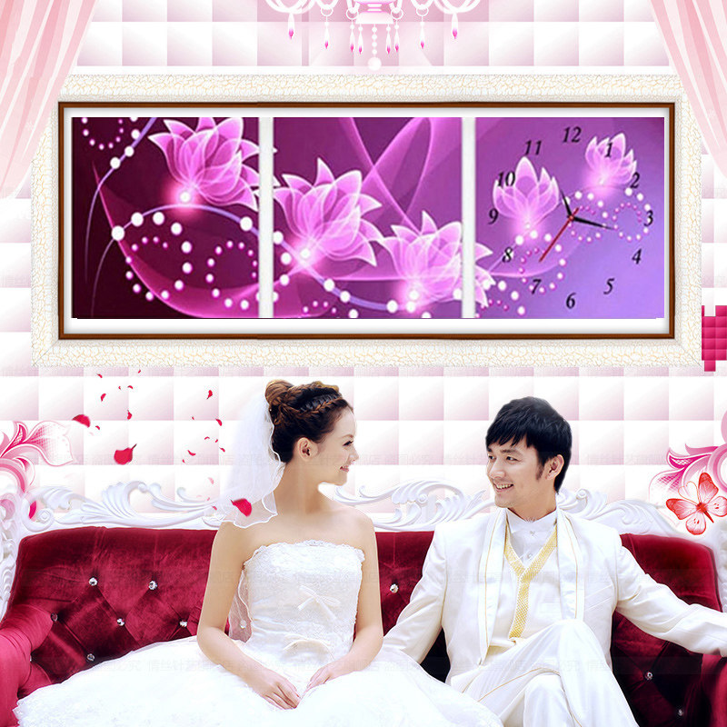 Watch cross stitch clock thread embroidery couple wall clock new living room bedroom simple modern European hanging painting triptych