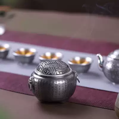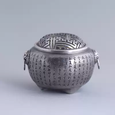 S999 Foot silver incense burner decoration Heart Sutra incense burner Sterling silver silver incense burner Small silver stove Incense road product incense silver stove twilight smoke