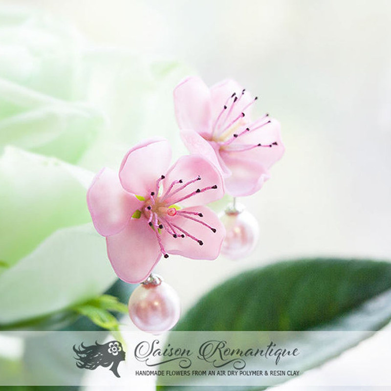 Russian Antonina original handmade -- flowers married -- sweet and pink cherry blossar earthen necklace handmade necklace