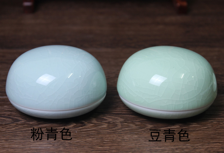 Jiagao Ruyao Celadon ice crack shaft printing clay box Ceramic powder box Rouge Box Wenfang Sibao Medium