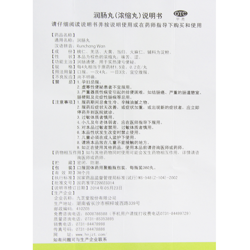 Jiuzhitang Runchang Pills 360 Pills Constipation Runchang Laxative Defecation Constipation Medicine Medicine for Constipation