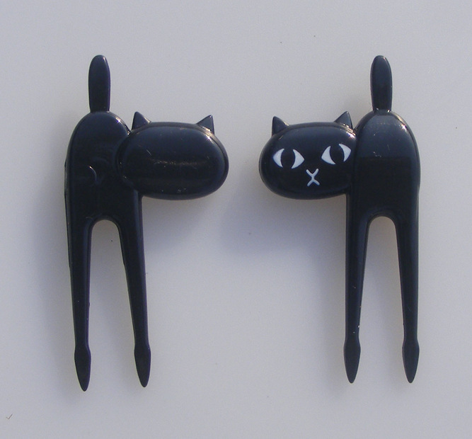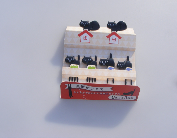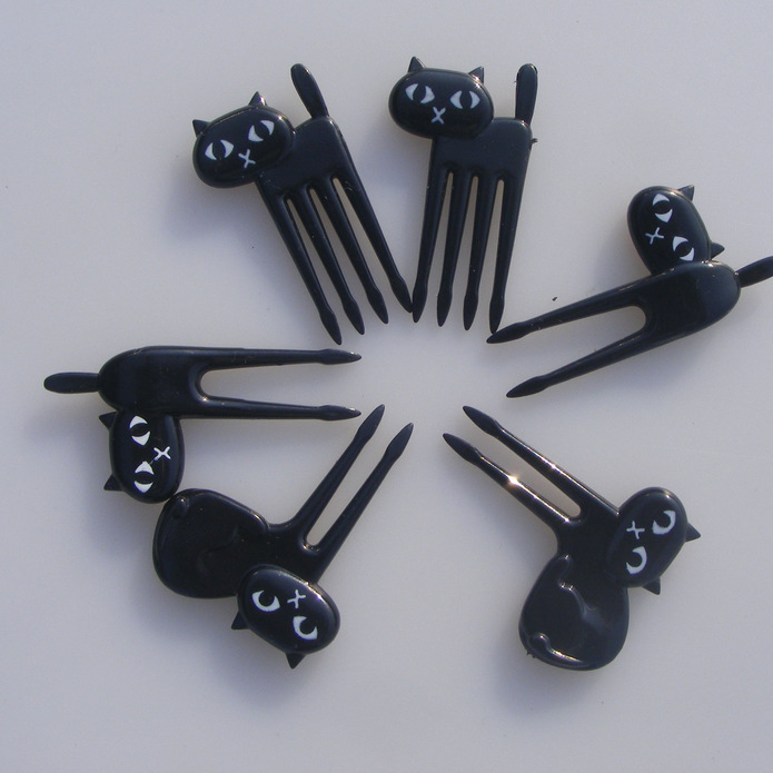 Black cat fruit fork Cute cartoon baby fork kitten lunch box decorative label 6pcs