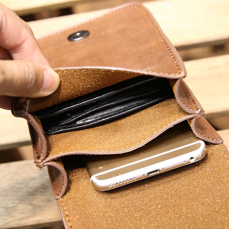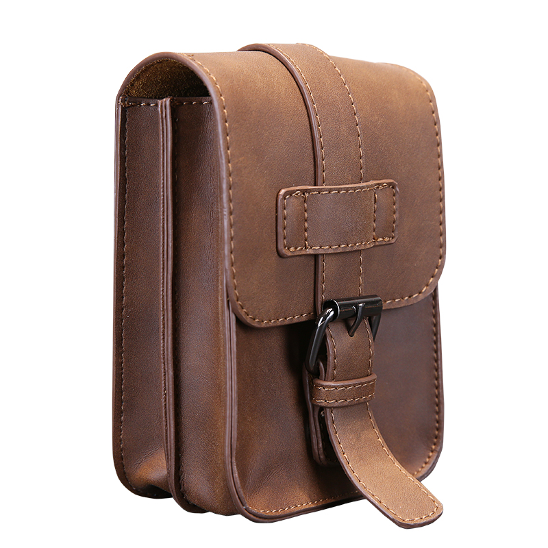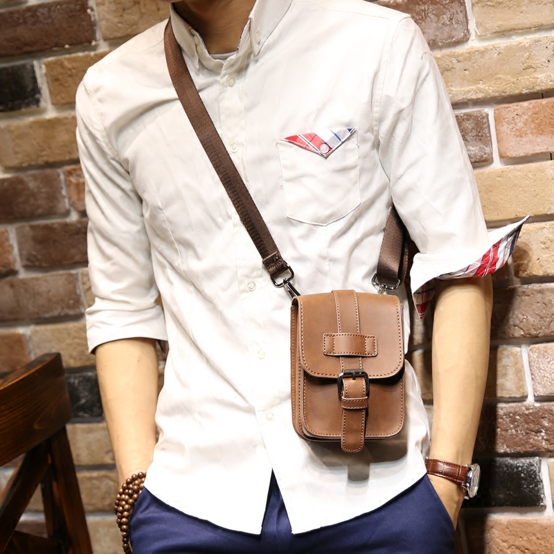 Men's bag Trend 5.5 inch mobile phone breast bag men wear belt belt belt bag multifunctional casual hanging bag crazy horse skin